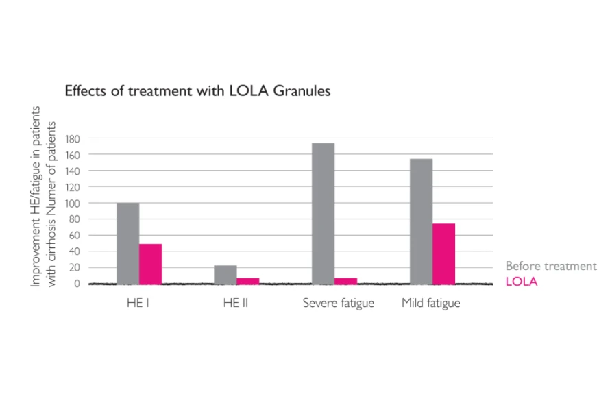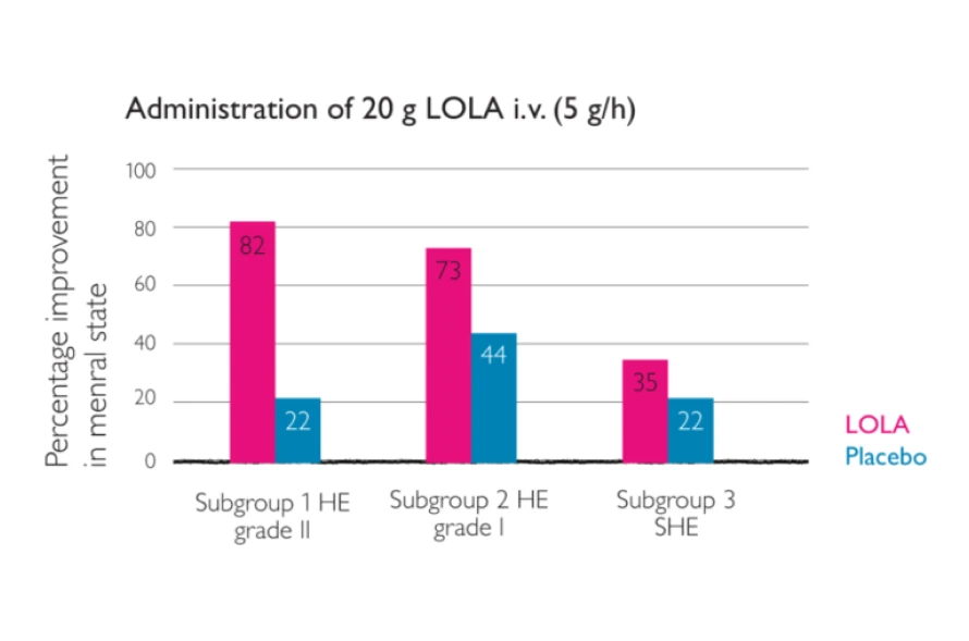 Placebo-controlled clinical trials show that, with respect to efficacy and tolerability, the oral form of LOLA is comparable to LOLA infusion concentrate for the treatment of HE.