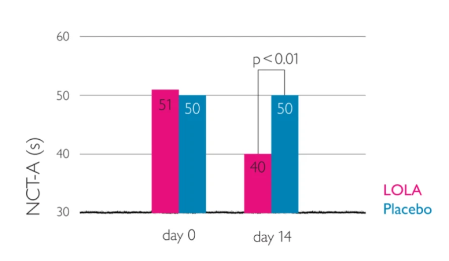 Reduction in NCT-A performance time (administration of 3 x 6 g oral LOLA)6