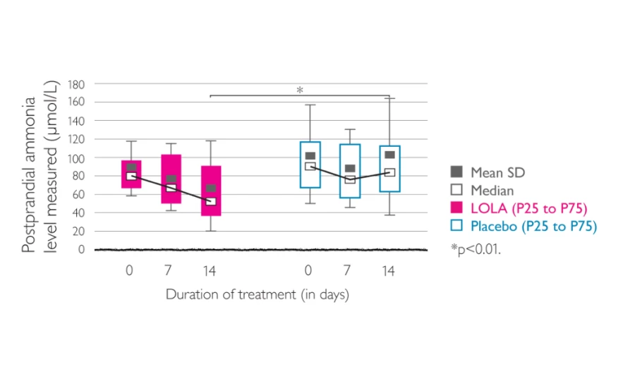 Significant improvements in patients with cirrhosis, HE and hyperammonemia treated with LOLA infusion4