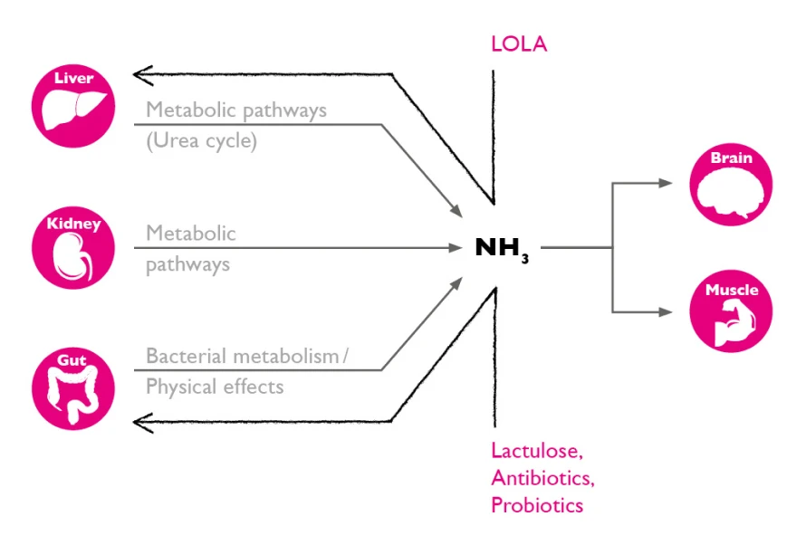 Bridging the gap between liver and brain: LOLA mechanism of action in treating HE