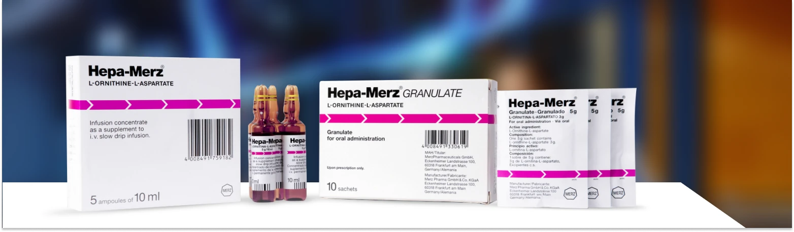 Hepa-Merz® is indicated for the treatment of disorders that accompany, or are secondary to hepatic detoxification impairment (e.g. liver cirrhosis) with symptoms of latent and manifest hepatic encephalopathy. Infusion formulation is specifically indicated for use in cases of precoma or coma.1