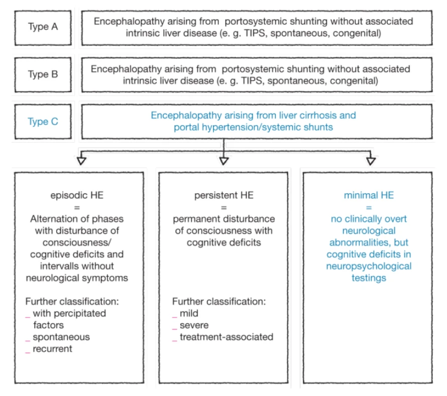 The following new classification was therefore proposed by ISHEN, the International Society for Hepatic Encephalopathy and Nitrogen Metabolism:4