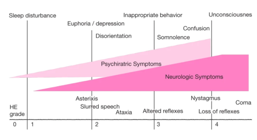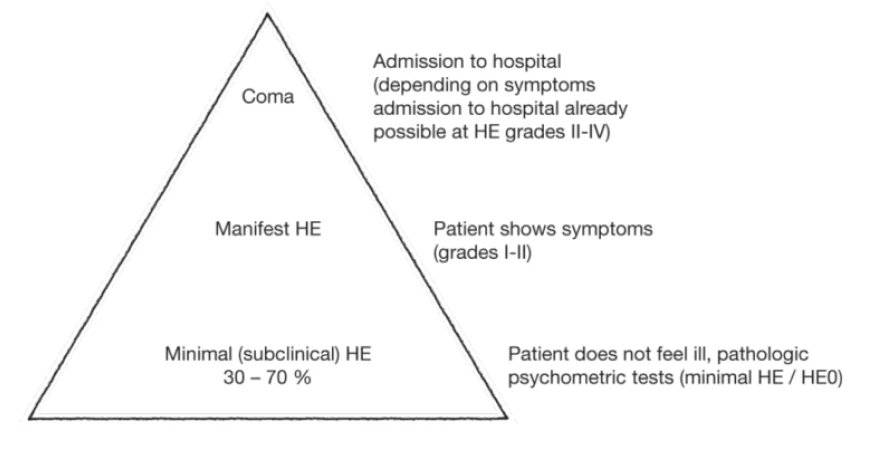 The clinical spectrum of HE from minimal HE to severe illness resulting in coma2